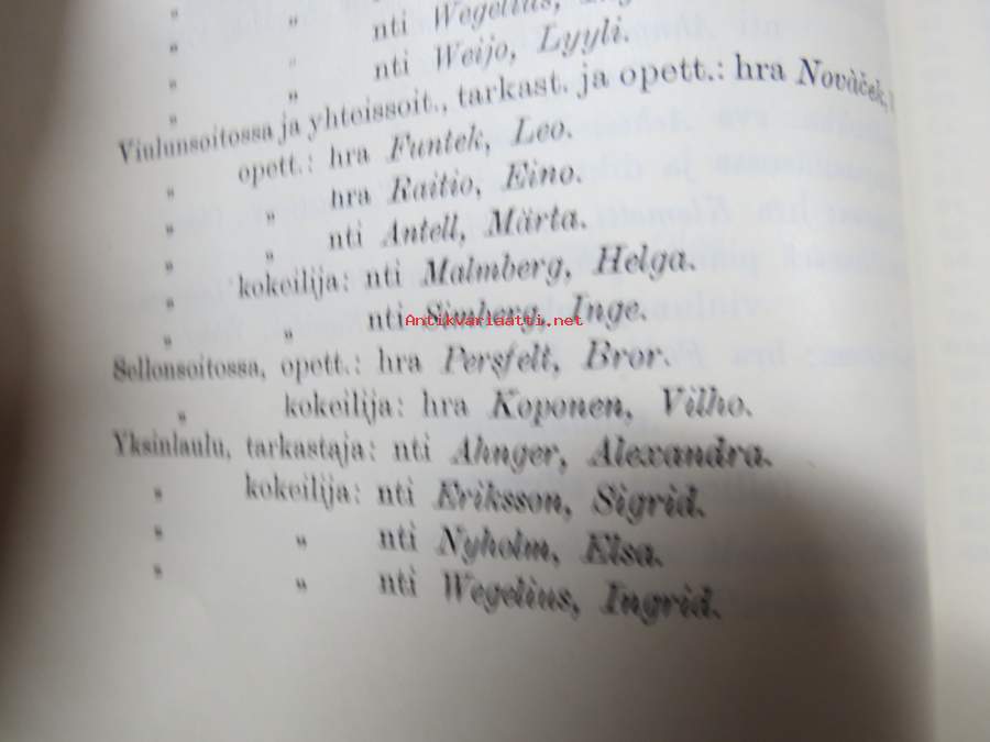 Helsingin Musiikkiopiston vuosikertomus vuodelta 1912-1913, oppilaslistat mm. opettajan Ilmari Hannikainen, oppilaina Jorma & Kirsti Gallen-Kallela