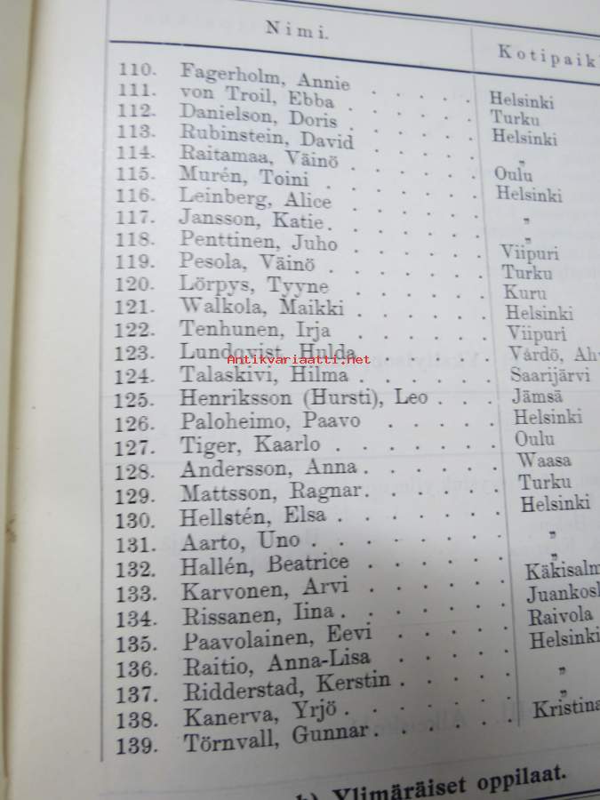 14 x 22 cm, kaikkien oppilaiden nimet näkyvät kohteen kuvissa.