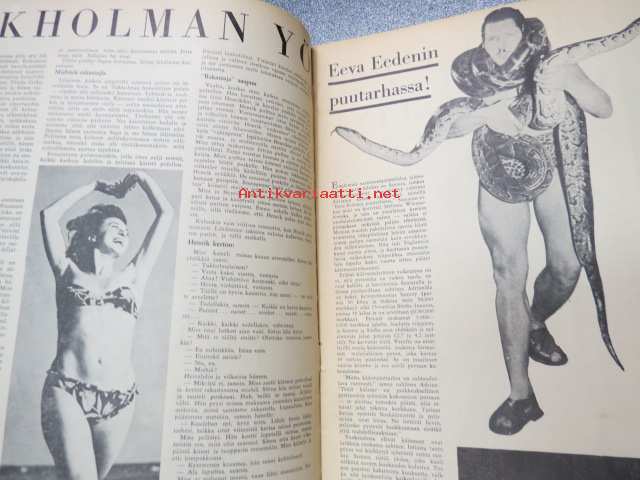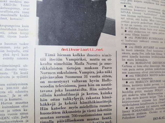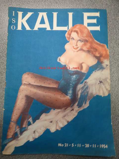 Kustannus Oy Kalle, 1954Kalle 1954 nr 21, sis. mm. seur. artikkelit / kuvat; Miss Maailma 1955, Narkomaanin synkkä tarina, Tukholman yö, Olen orjatyttö!, Minne hävisi Hanna Reitsch, Vampira / Maila Nurmi, ym.25 x 35 cm.