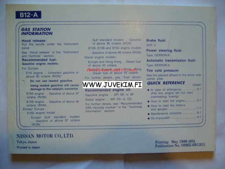 Nissan Sunny -omistajan käsikirja