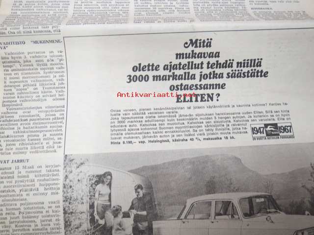 Moottoriviesti 1967 nr 1, Kaniskuva Monte Carlo 1. Aaltonen - Suomi, VW Variant testiä, Opel Kadett testiä, VW 1500 testiä, Volvo 144 S koeajo (3 sivua)... Näytä
