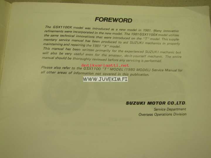 Suzuki GSX1100 supplementary service manual -korjaamokirjan lisäosa
