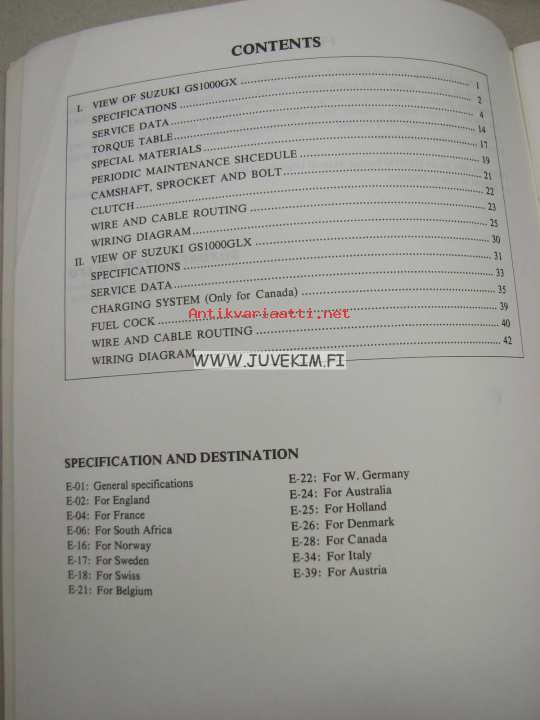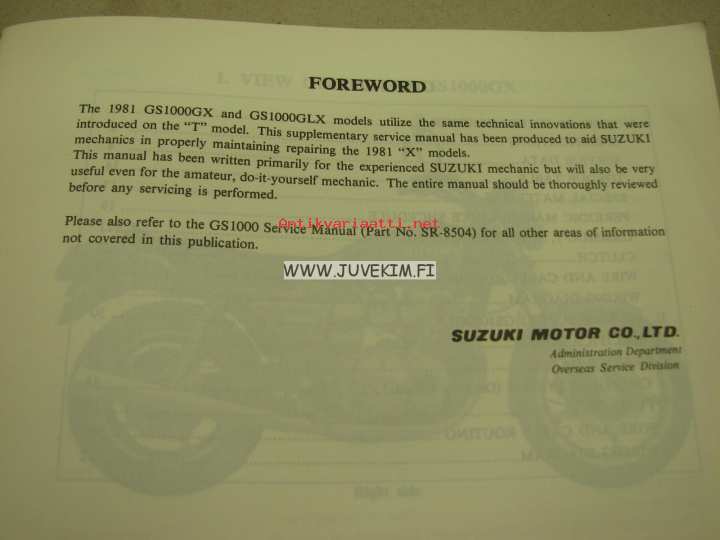 Suzuki GS1100G/GL supplementary service manual -korjaamokirjan lisäosa