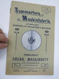 Tammerfors Maskinfabrik Ab / Tampereen Konetehtaan Oy Sommers, Af Hällström & Waldens - Priskurant sågar, maskinbett m. f.l. tillverkningar -kuvasto / hinnasto