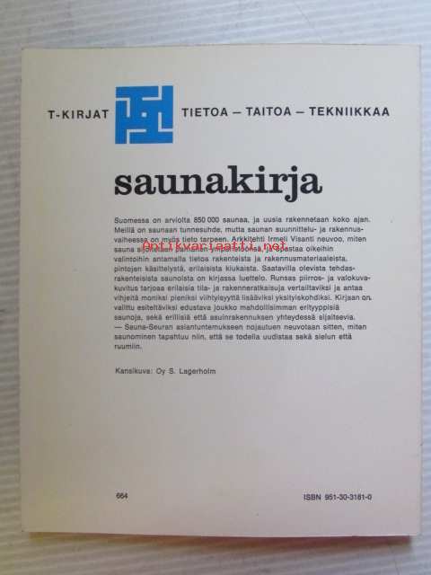 | Saatavilla | 0 kpl (Huom. tuote on myyty! / Sold out!) | | Julkaisuvuosi | 1975 | | Sivuja | 156 | | Painos | 1. | | Kunto | K2 | | Sidonta/painoasu | Nidottu (pehmeäk.) | | ISBN | 951-30-3181-0 | | Kielet | Suomi |
