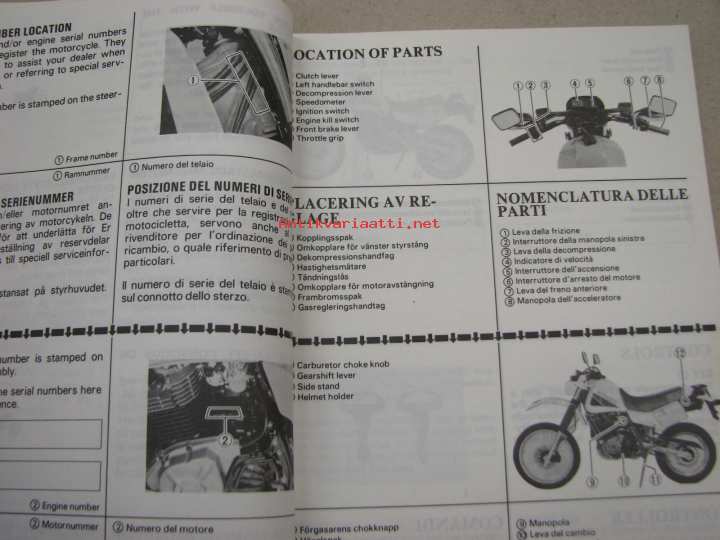 Yamaha YFM80RV Owner´s manual, Manuel du proprietaire, Manual del propietario -moottoripyörä, käyttöohjekirja englanniksi, italiaksi, espanjaksi