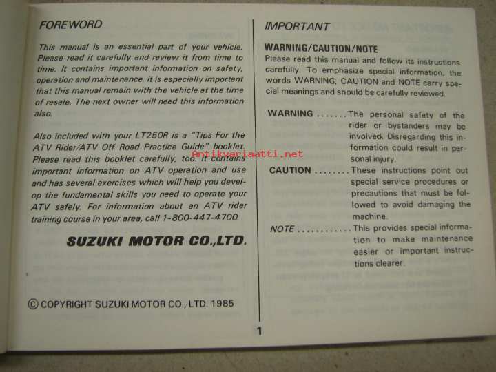 Yamaha YFM80RV Owner´s manual, Manuel du proprietaire, Manual del propietario -moottoripyörä, käyttöohjekirja englanniksi, italiaksi, espanjaksi