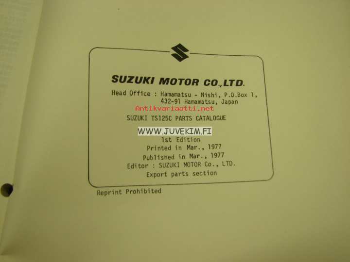 Suzuki TS125C parts catalogue -varaosaluettelo