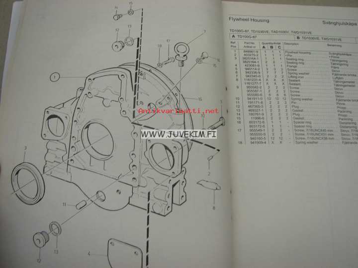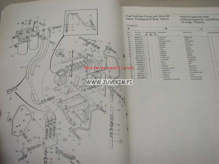 Volvo Penta TD100G-87 from SN 2100291138- D100, 1030, 1031 parts catalogue -varaosaluettelo