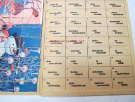 Oy Valistus, 1950Opi leikkien palapeli S2-peli sanaluokkaharjoitus (48 palasta, Kertomus - Koiranpennut - laatinut Inkeri Laurinen - kuvitus Rudolf Koivu - kuori ja kannet Martta Wendelin