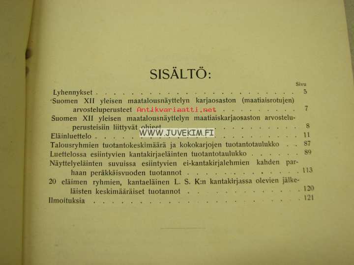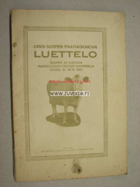 Länsi-Suomen maatiaiskarjan luettelo Suomen XII yleisessä maatalousnäyttelyssä Tampereella 1922