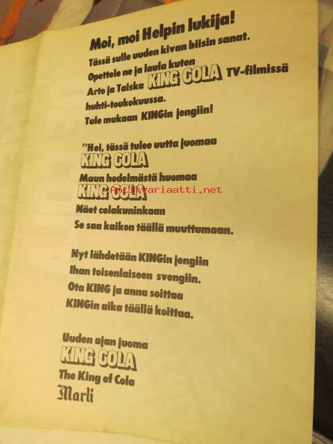 King Cola - The King of Cola / Wrangler Arto ja Taiska - Help -nuorisolehden mukana tullut keskiaukeamajuliste
