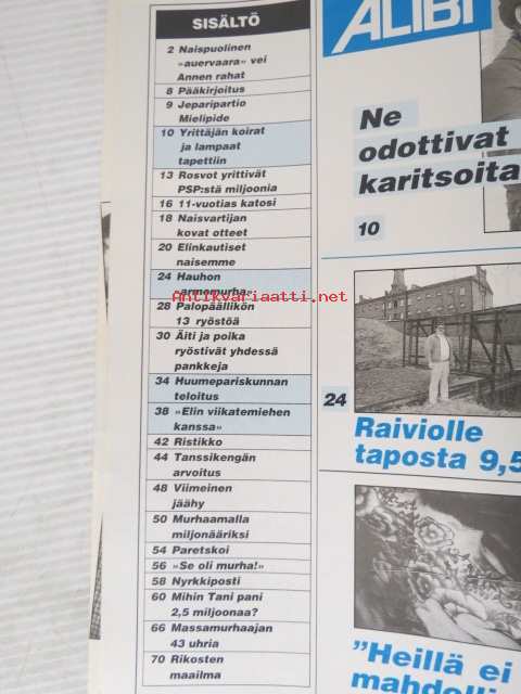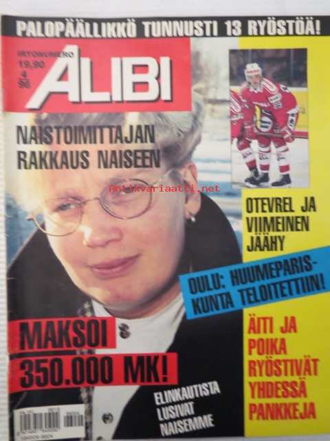 Otavamedia Oy, 1996Alibi 1996 nr 4, sis. mm. artikkelit / kuvat / mainokset; Pretoria, Liv Van Den Hoek, Pia Töyli ja Pia Kuru, Harri Leppinen, Elfriede Blauensteiner, Reijo Kuivainen, Anne Anttila, katso sisältö kuvista tarkemmin.
