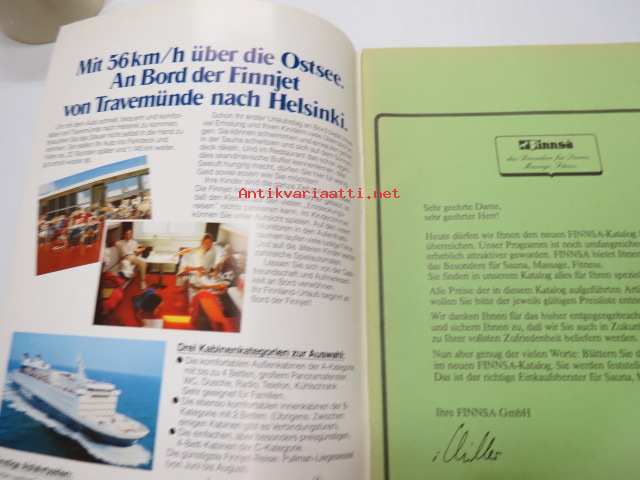 Finnsa Katalog 1981-1982 - das Besondere für Sauna, Massage, Fitness -saksalainen saunojen ja saunatarvikkeiden luettelo, Finnjet-mainos