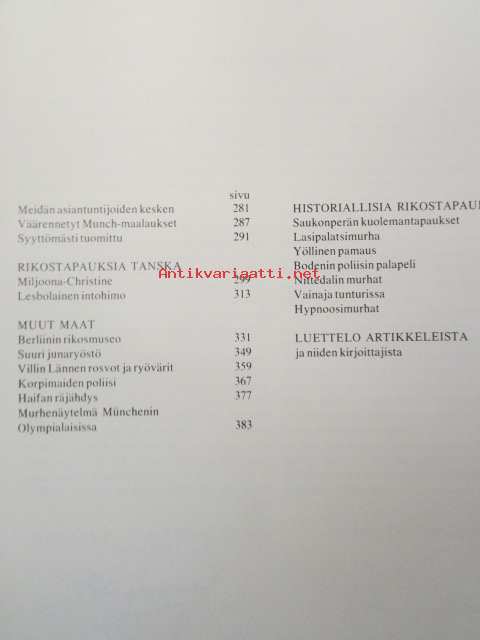 | Saatavilla | 1 kpl | | Julkaisuvuosi | 1976 | | Sivuja | 463 | | Kunto | K2 | | Kannessa tahroja, katso kuvasta tarkemmin | | Sidonta/painoasu | Sidottu (kovak.) | | Kielet | Suomi |