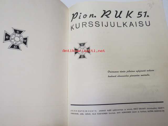 Pion. RUK 51 - sota-ajan (välirauha?) pioneerikurssin kurssijulkaisu