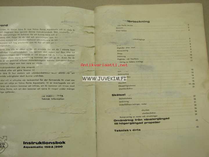Volvo Penta Aquamatic 150 A / 200 instruktionsbok -käyttöohjekirja