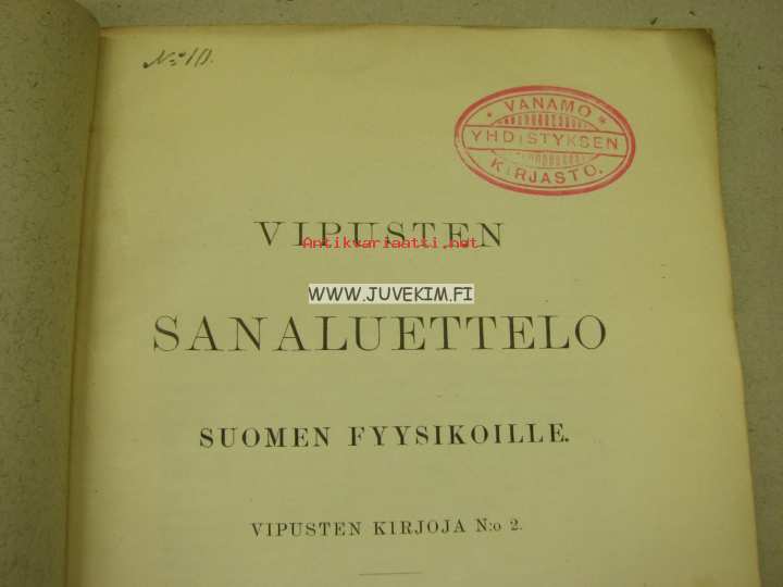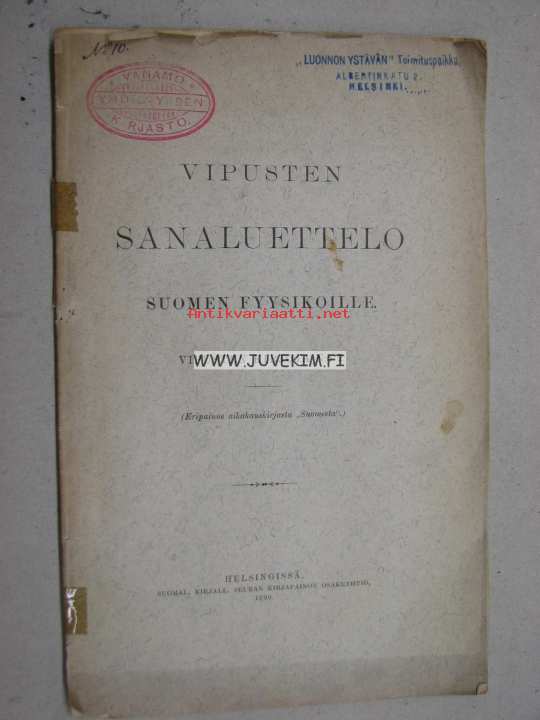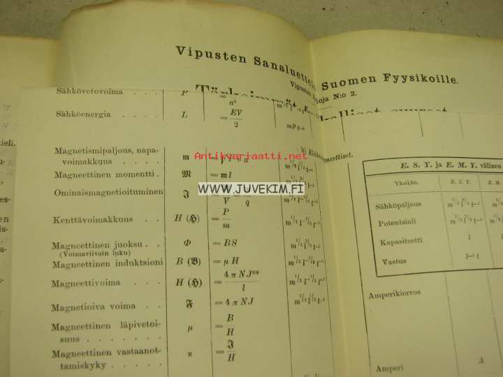 Vipusten sanaluettelo suomen fyysikoille Vipusten kirjoja N:o 2.