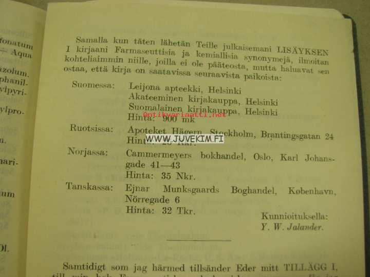 Farmaseuttisia ja kemiallisia synonymejä lisäyksiä I