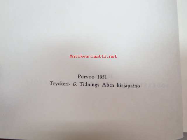 | Saatavilla | 0 kpl (Huom. tuote on myyty! / Sold out!) | | Julkaisuvuosi | 1951 | | Sivuja | 172 | | Painos | 1. | | Kunto | K3 | | Kansipaperit K2 | | Sidonta/painoasu | Sidottu (kansipaperit) | | Kielet | Suomi |