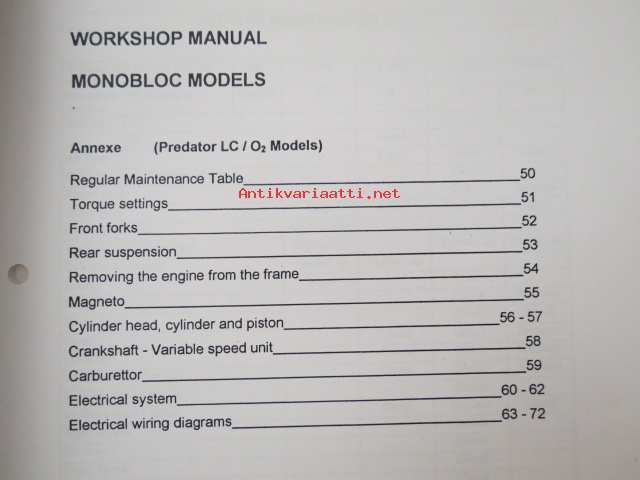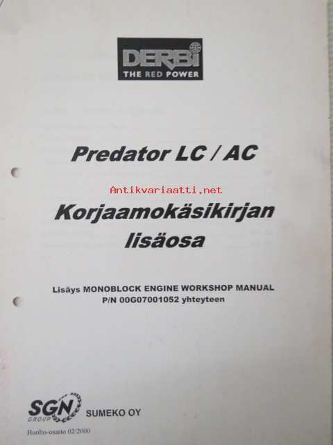 Derbi Predator LC / AC Workshop Manual -korjaamokäsikirjan P/N 00G07001052 lisäosa, katso tarkemmat malli merkinnät kuvista