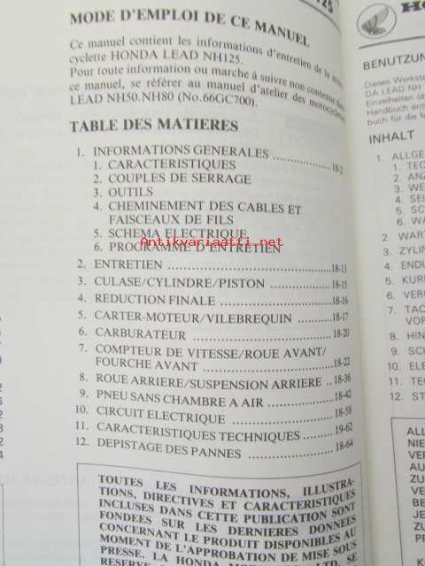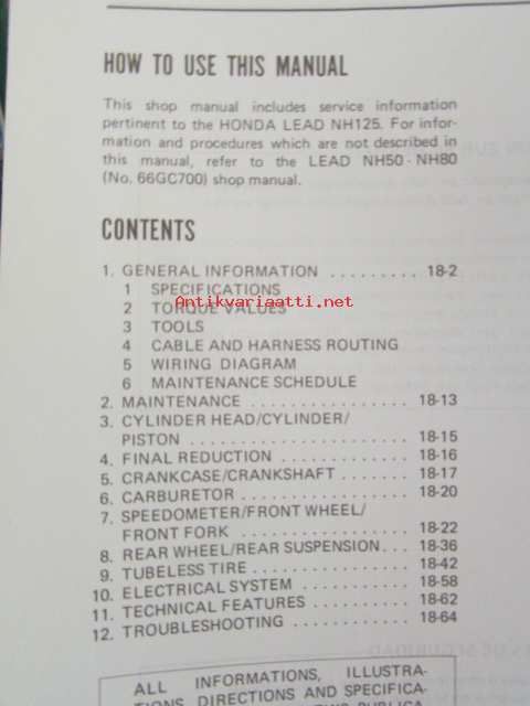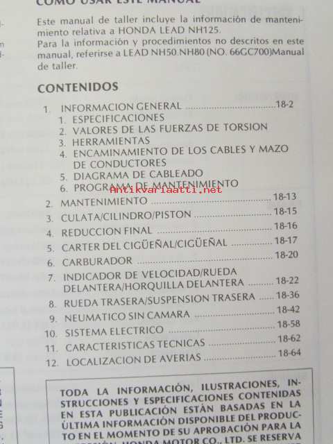 Honda LEAD NH125, Shop Manual -Korjaamokäsikirja, katso sisältö kuvista tarkemmin