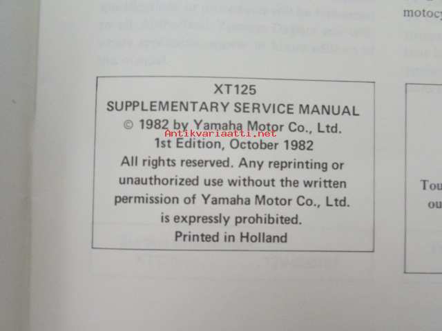 Yamaha XT125 Supplementary service manual -huolto-ohjekirja