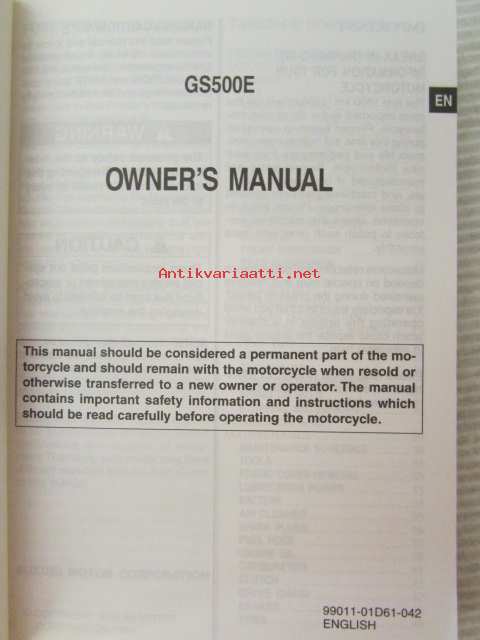 Suzuki GS500E Owner´s manual -käyttöohjekirja