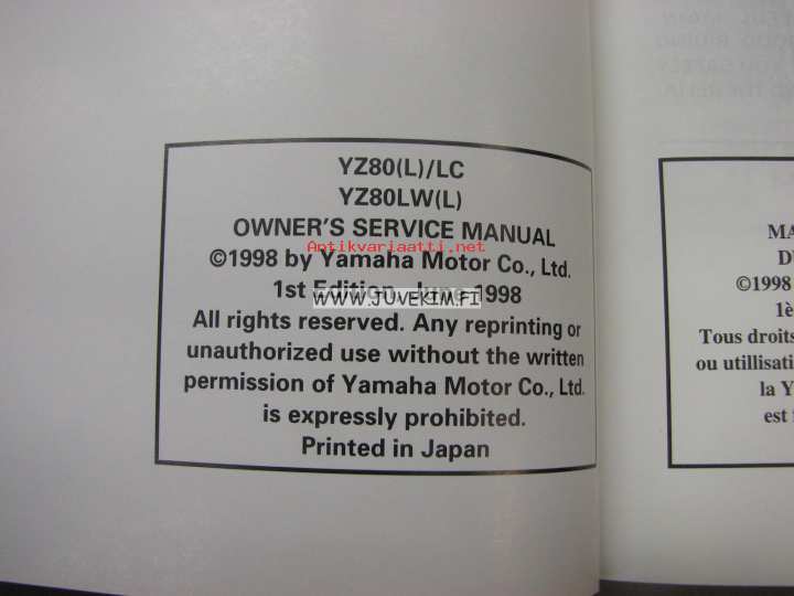 Yamaha YZ80(L)/LC YZ80LW(L) owner´s service manual -huolto-ohjekirja englanniksi