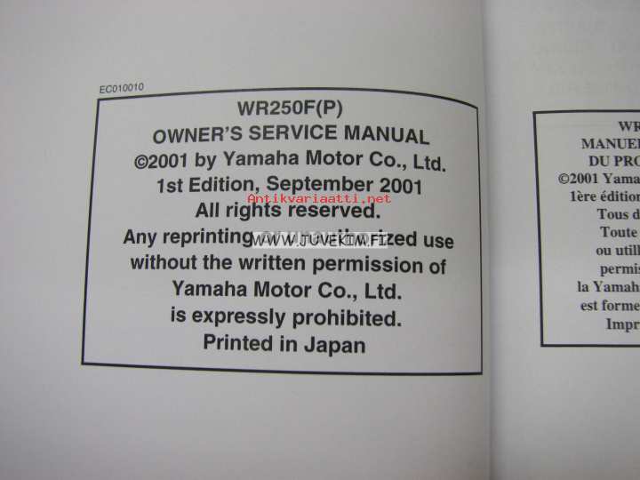 Yamaha WR250F(P) owner´s service manual -huolto-ohjekirja englanniksi