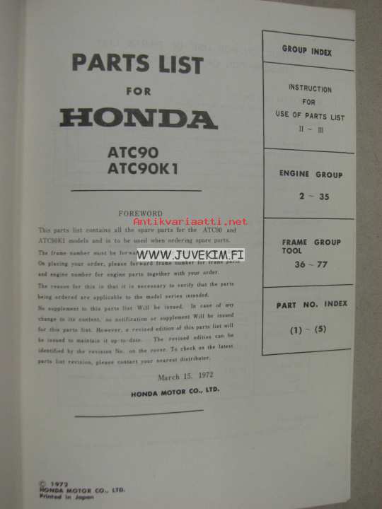 Honda ATC90 90K1 parts list -varaosaluettelo englanniksi