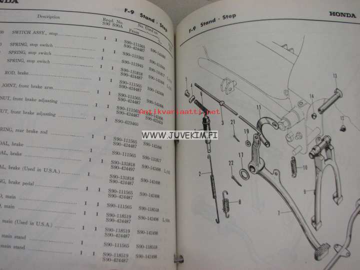 Honda 90 Sport S90 parts list -varaosaluettelo englanniksi