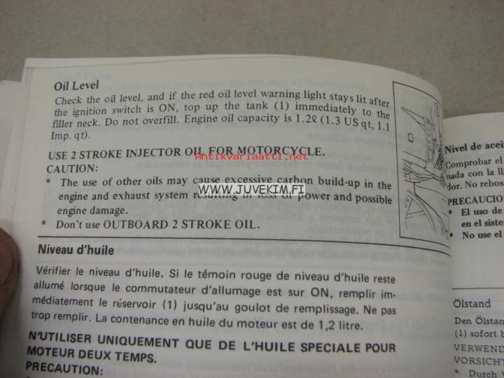 Yamaha YFM80RV Owner´s manual, Manuel du proprietaire, Manual del propietario -moottoripyörä, käyttöohjekirja englanniksi, italiaksi, espanjaksi