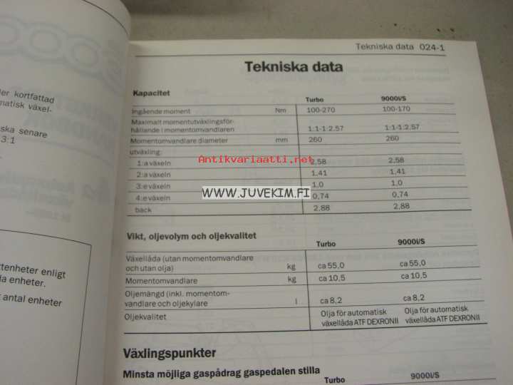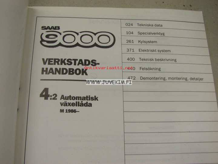 Saab 9000 Verkstadshandbok 4:2 Automatisk växellåda M 1986-87- -korjaamokirjasarjan osa ruotsiksi