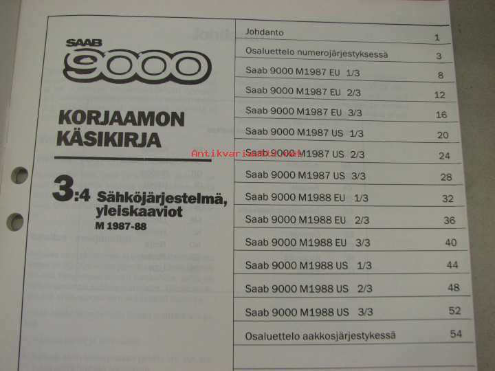 Saab 9000 Korjaamon käsikirja 3:2 Sähköjärjestelmä, yleiskaaviot M1987-1988 -korjaamokirjasarjan osa