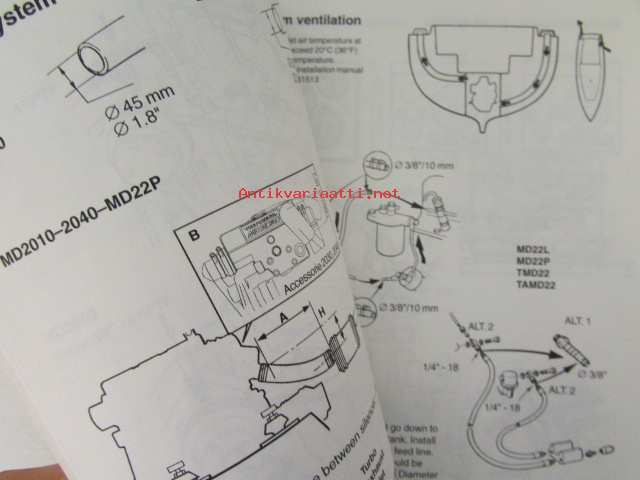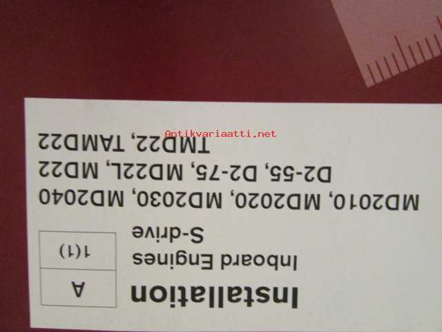 Volvo Penta Installation Inboard Engines S-drive - MD2010, MD2020, MD2030, MD2040, D2-55, D2-75, MD22L, MD22, TMD22, TAMD22 -sisäperämoottorin asennus, katso tarkemmat mallien merkinnät kuvasta.