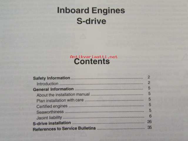 Volvo Penta Installation Inboard Engines S-drive - MD2010, MD2020, MD2030, MD2040, D2-55, D2-75, MD22L, MD22, TMD22, TAMD22 -sisäperämoottorin asennus, katso