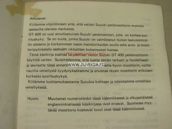 Suzuki DT 400 perämoottori -käyttöohjekirja