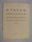 Otavan kansakoulu- ja jatkokoulukirjat sekä opettajain valmistekirjat 1943