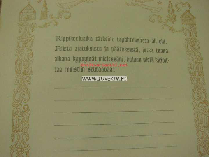 Kustannus Oy Mantere, 1948 21 x 30 cm kirja. Rippikoululaisen ja rippikouluajan arvokas muistokirja, täyttämätön.