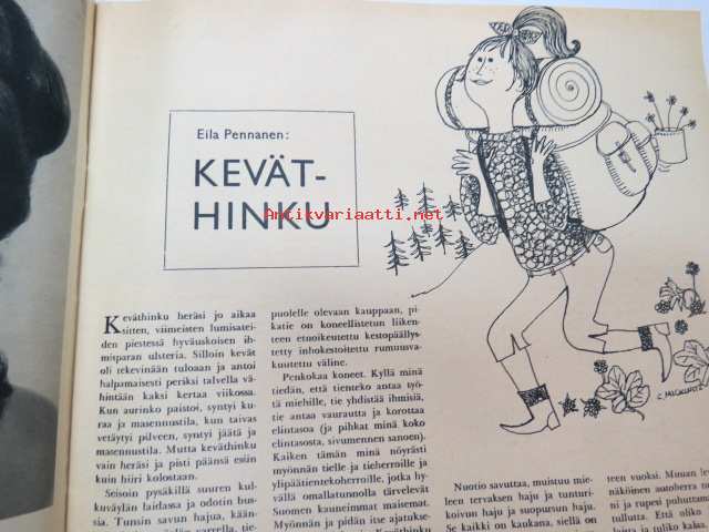 | Saatavilla | 0 kpl (Huom. tuote on myyty! / Sold out!) | | Julkaisuvuosi | 1965 | | Sivuja | 64 | | Kunto | K3 | | Sidonta/painoasu | Nidottu (pehmeäk.) | | Kielet | Suomi |