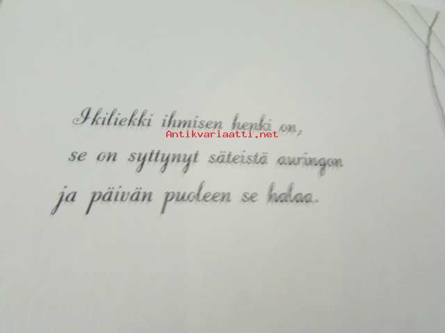 | Saatavilla | 1 kpl | | Kunto | K3 | | Sidonta/painoasu | Pienpainate | | Kielet | Suomi |