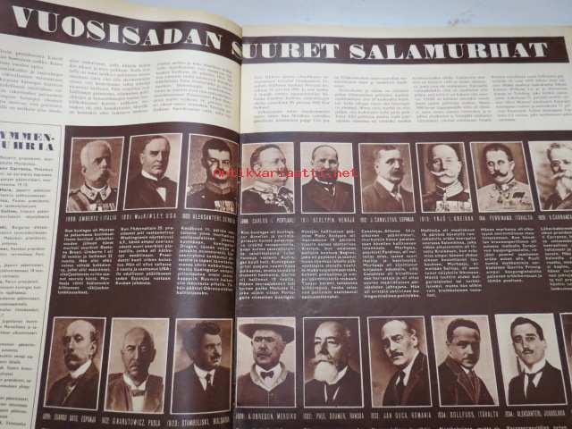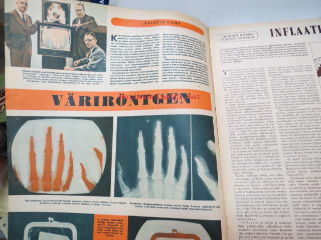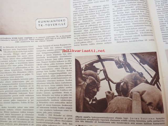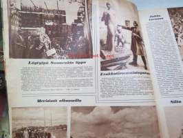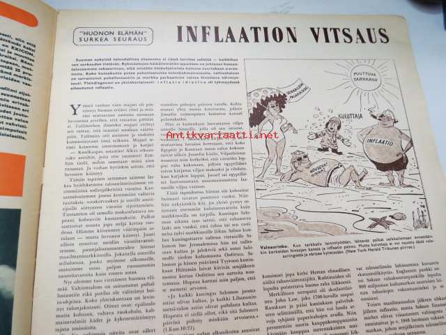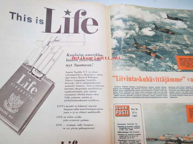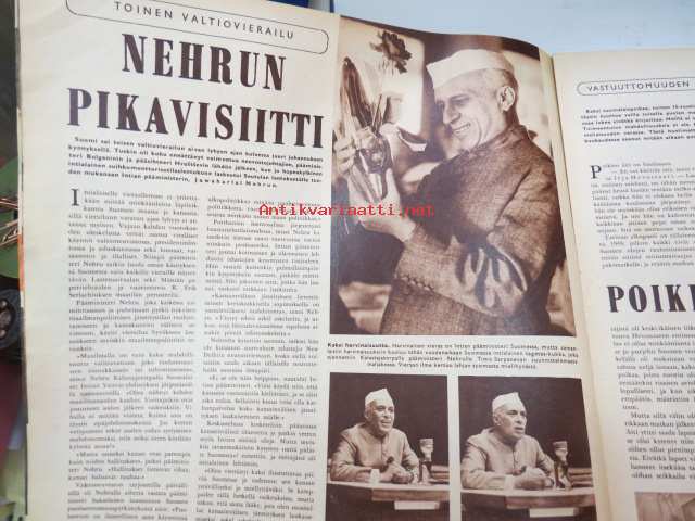 Valiolehdet Oy, 1957Kuvaposti 1957 nr 26, ilmestynyt 27.6.1957, sis. mm. seur. artikkelit / kuvat / mainokset;Väriröntgen, TK-valokuvaaja Nils Helander, Nehrun pikavisiitti, Vastuuttomuuden surulliset seuraukset - isä (liikemies Mäkelä) vei 2 poikaansa (Ensio ja Henry Mäkelä)Venezuelaan ja ovat nyt siellä luku- ja kirjoitustaidottomina kerjäläisinä - juuret v. 1949 toteutetussa suomlaisten luvattomassa lähdössä Tangeriin - äiti Irja Hevossaari pyytää apua, Vuosisadan suuret salamurhat, Islanti pyrkii eteenpäin, Voitto Hellstenin uusi ura, Askolan leipäkylä - Monninkylä, Saaristo soi, Gnat hävittäjät valmistuvat, ym. -magazine