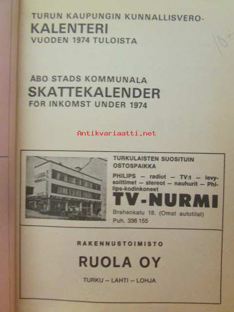 Turun kaupungin kunnallisverokalenteri 1975 vuoden 1974 tuloista