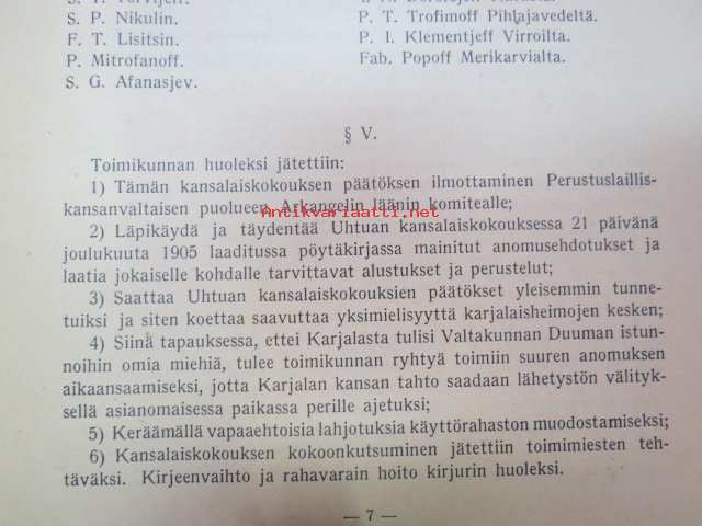 Ohjelmia, puheita, runoja ym. karjalaisten kansallisten liikkeitten alkuajoilta -Vienan Karjalan asukkaitten kokouksissaa esittämiä kehittämistarpeita, joita ensin esitettiin Keisarilliselle hallinnolle ja myöhemmin väliäikaiselle hallitukselle - silmiinpistävä osuus "Suomessa olevia" = alkuaan laukkukauppiaita, sittemmin osittain erittäinkin menestyneitä ja nimensä suomentaneita karjalaisia kauppiaita / kauppiassukuja edustettuna näitten julkilausumien allekirjoittajina -Carelian national movement - early poems, programs, speeches etc.