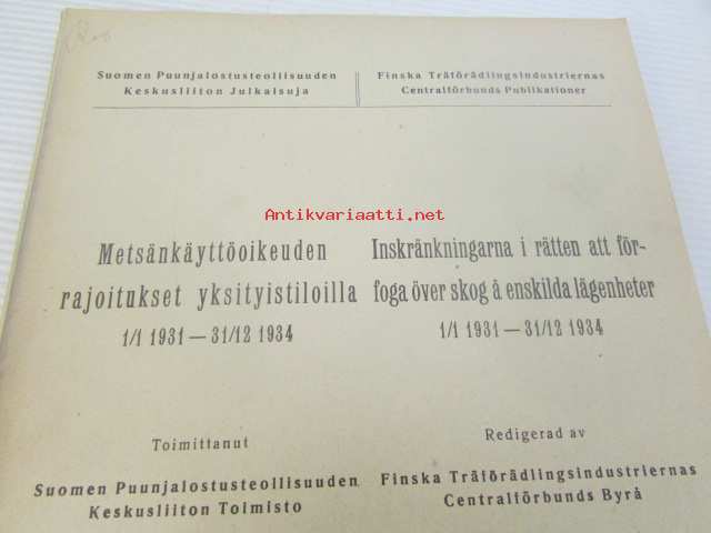 Metsänkäyttöoikeuden rajoitukset yksityistiloilla 1.1. 1931 - 31.12.1934/ Inskränkningarna i rätten atta förfoga över skog å enskilda lägenheter