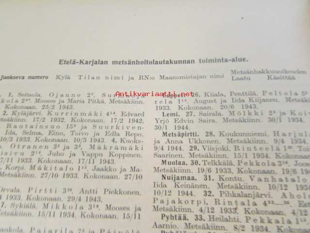 Metsänkäyttöoikeuden rajoitukset yksityistiloilla 1.1. 1931 - 31.12.1934/ Inskränkningarna i rätten atta förfoga över skog å enskilda lägenheter 1.1.1931 - 31.12.1934 mm. Etelä-Karjalan ja Itä-Karjalan alueet