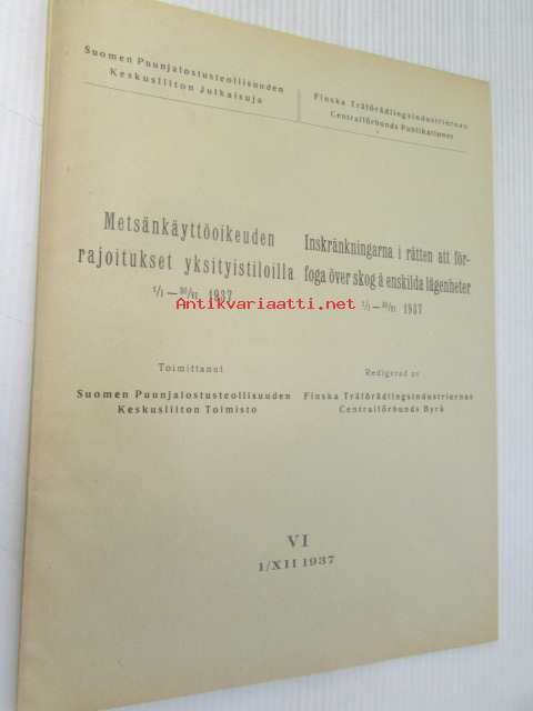 Metsänkäyttöoikeuden rajoitukset yksityistiloilla 1.1. 1937 - 31.6.1937 / Inskränkningarna i rätten atta förfoga över skog å enskilda lägenheter