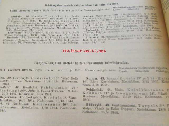 Metsänkäyttöoikeuden rajoitukset yksityistiloilla 1.1. 1937 - 31.6.1937 / Inskränkningarna i rätten atta förfoga över skog å enskilda lägenheter 1.1.1937 - 31.6.1937 mm. Etelä-Karjalan ja Itä-Karjalan alueet