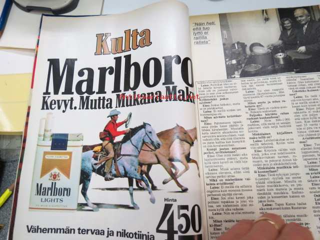 Kustannusosakeyhtiö Apulehti, 1977 UM Uusi Maailma 1977 nr 22, ilmestynyt 9.11.1977, sis. mm. seur. artikkelit / kuvat / mainokset; Kansikuva Kate O´Mara, Aateluus ei velvoita mihinkään - ainakaan M onacossa, Eino ja Laila Poutiainen 33 vuotta yhdessä, Ford Granada, Marlboro, Marion Sneen, Ovatko olympiamitalit eriarvoisia - Pertti Karppinen - Pertti Ukkola, Maailma ei unohda kaunista Evitaa, Miksi koulu ahdistaa?, Terroristi Carlos, Colt, ym. 22 x 30 cm.